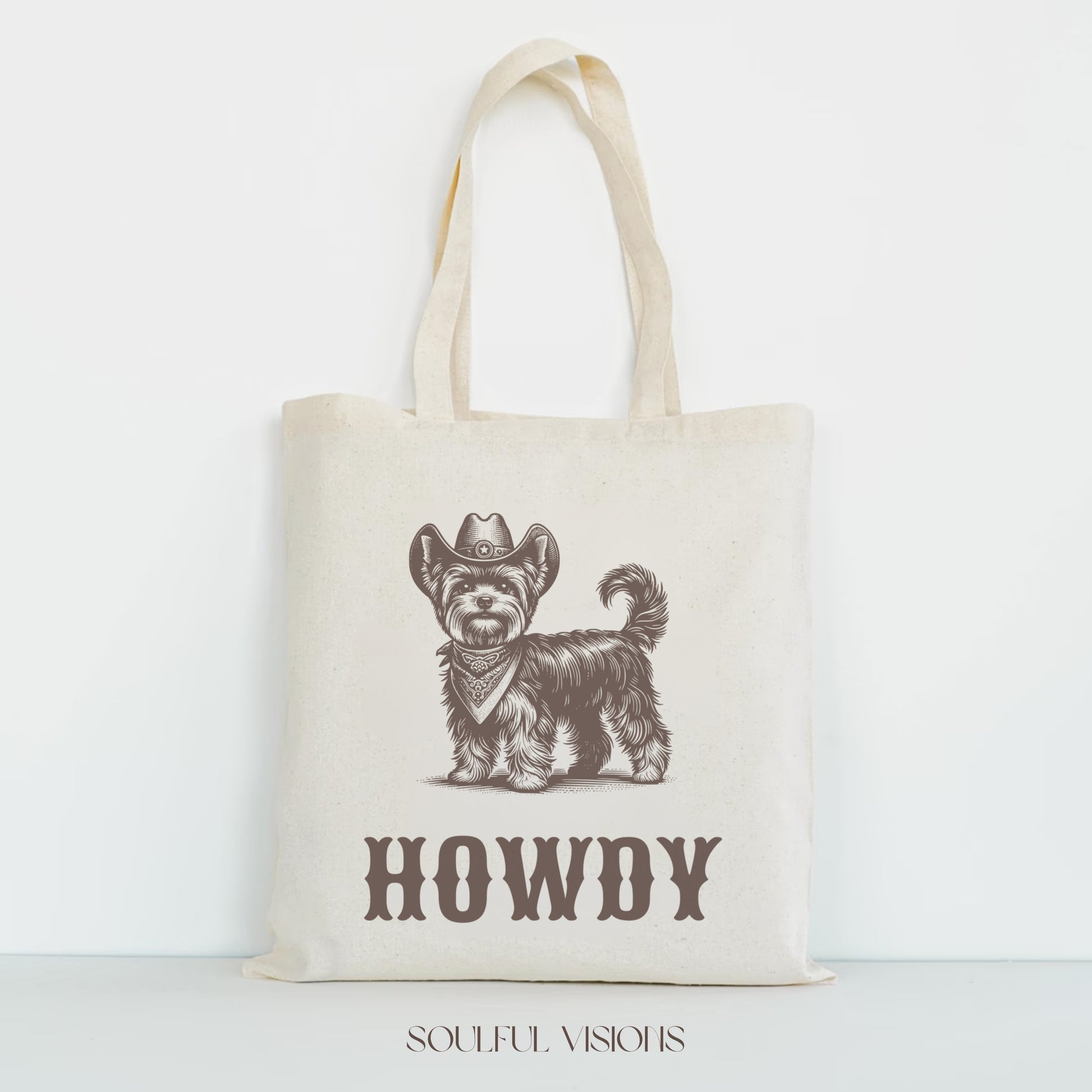 Show off your pet obsession, western style! Our Howdy Tote Bags feature your favorite pet breeds in a playful, vintage-inspired design that turns heads wherever you go.