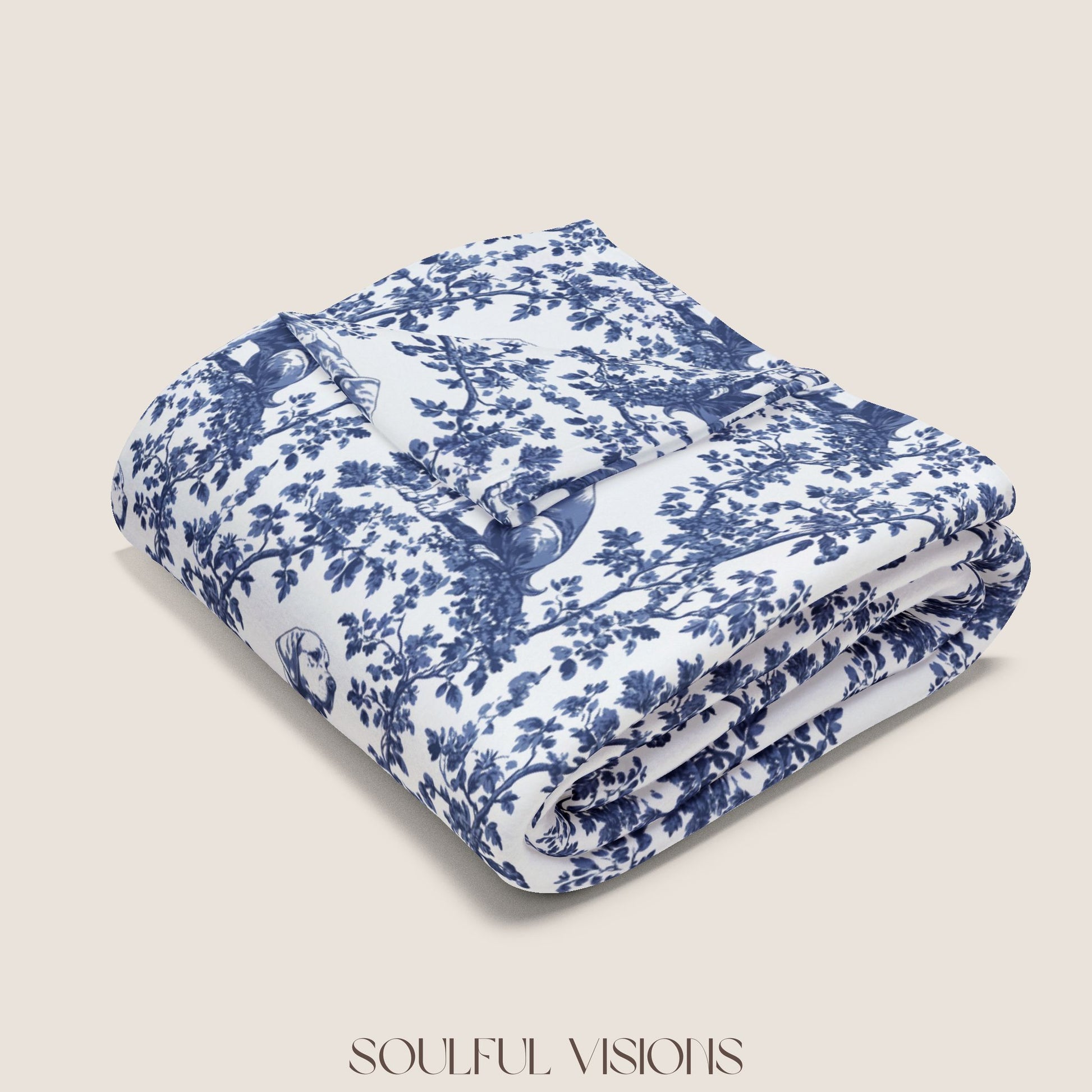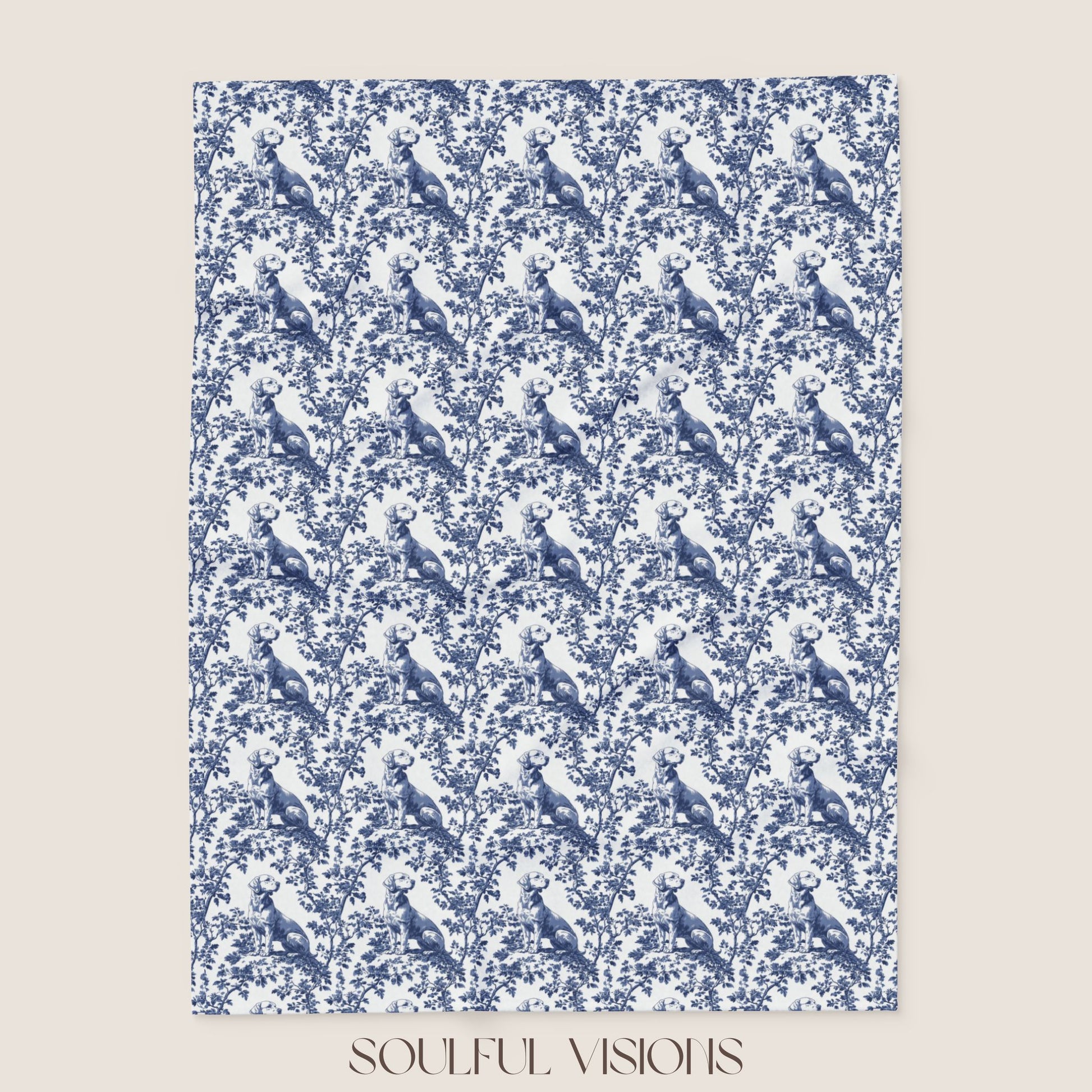 Dog Breeds Toile de Jouy Blue & White Blanket 🐾💙