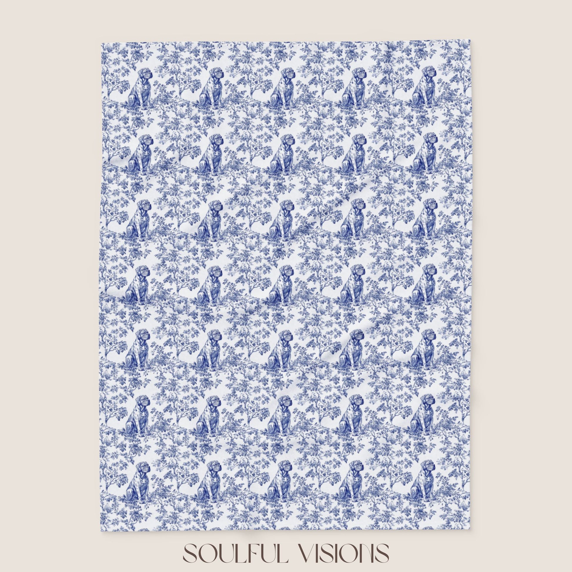 Dog Breeds Toile de Jouy Blue & White Blanket 🐾💙
