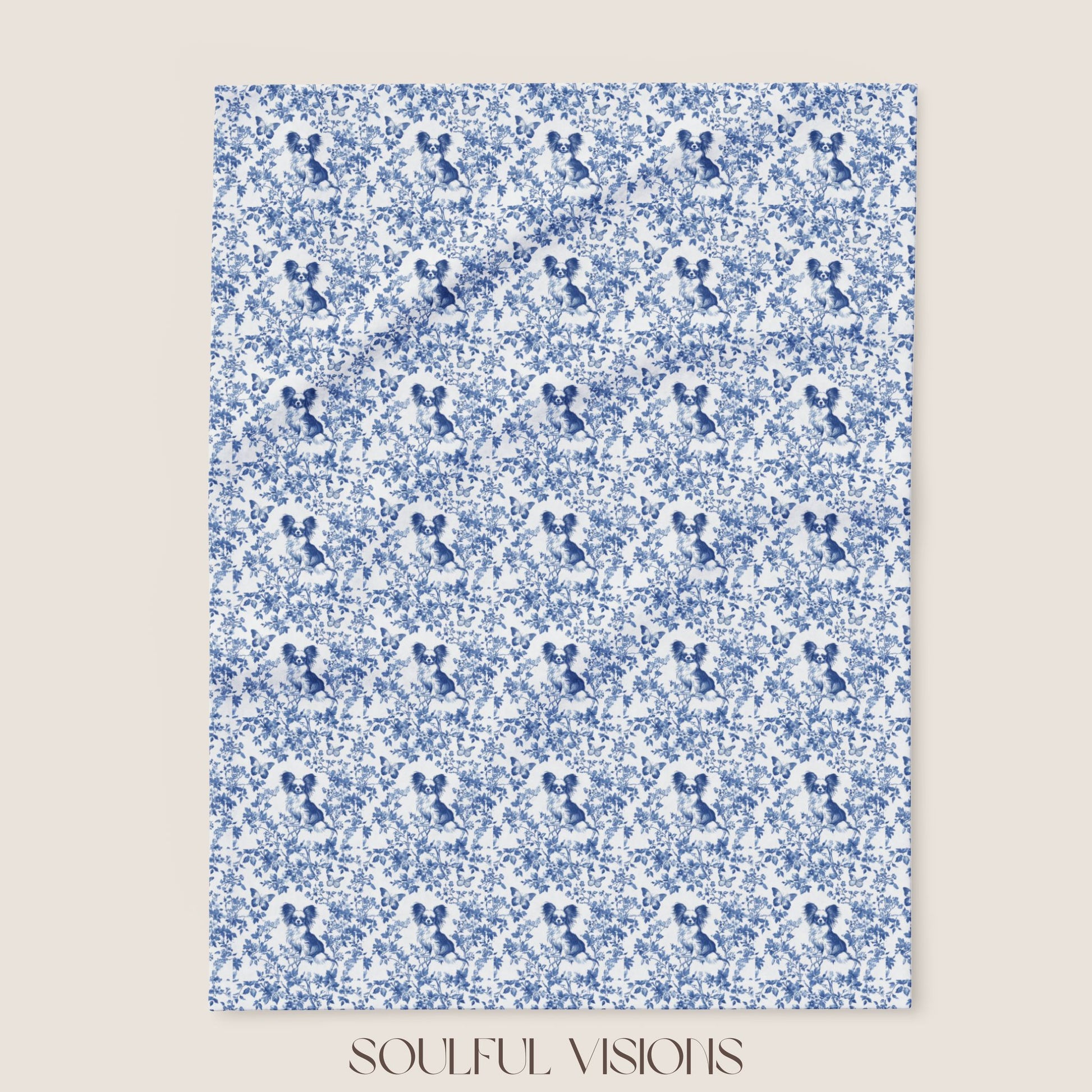 Dog Breeds Toile de Jouy Blue & White Blanket 🐾💙