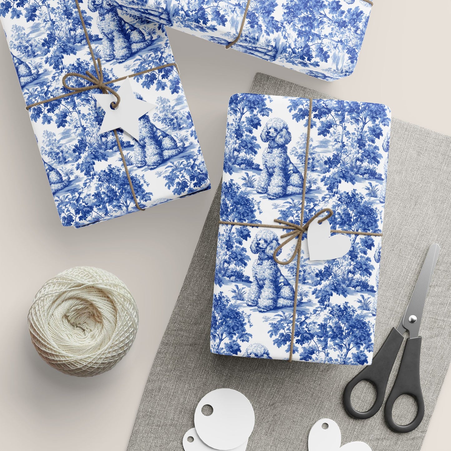 Elevate your gift-giving with our elegant French Toile de Jouy wrapping paper. Featuring a timeless vintage pattern, this wrapping paper brings a touch of sophistication and charm to every package — perfect for dog lovers, holidays, or special occasions.