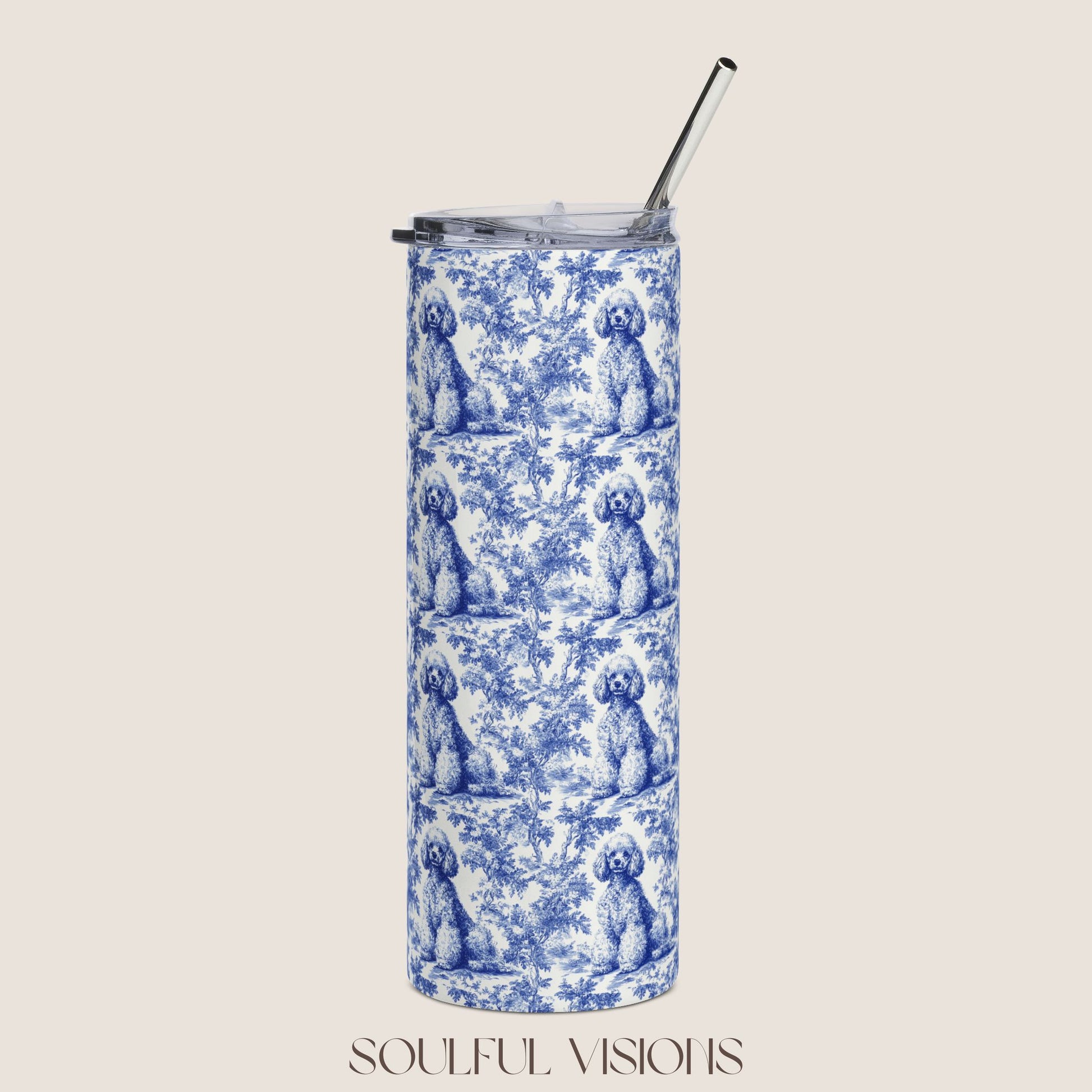 Poodle Stainless Steel Tumbler With Straw, 20oz