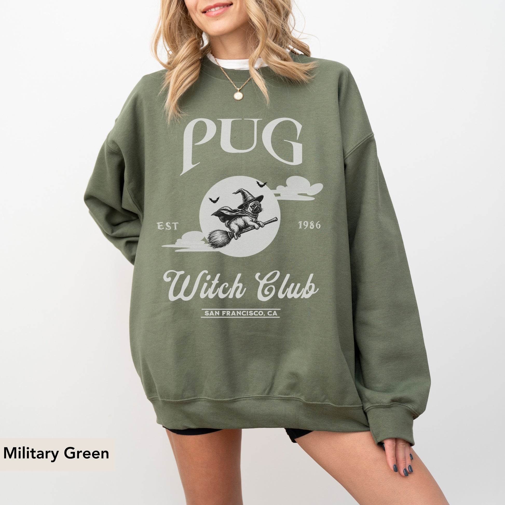 Join the club this Halloween season with our Witch Club Collection! Each sweatshirt features your favorite dog breed dressed as an enchanting witch — flying on a broom with hat and cape — for a playful spooky twist.