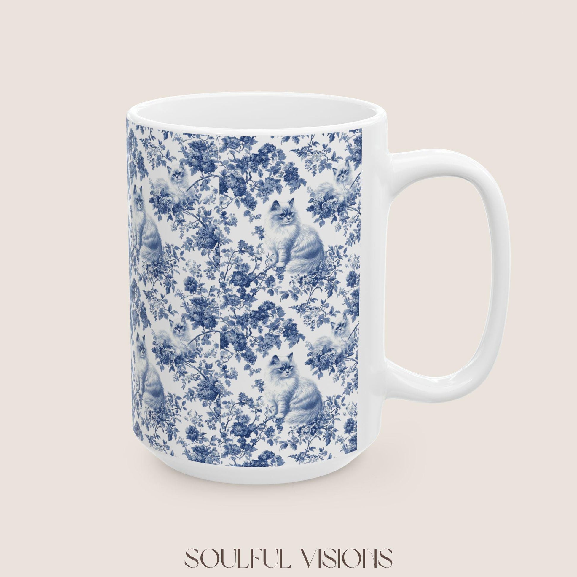 Ragdoll Cat Blue French Toile De Jouy Mug