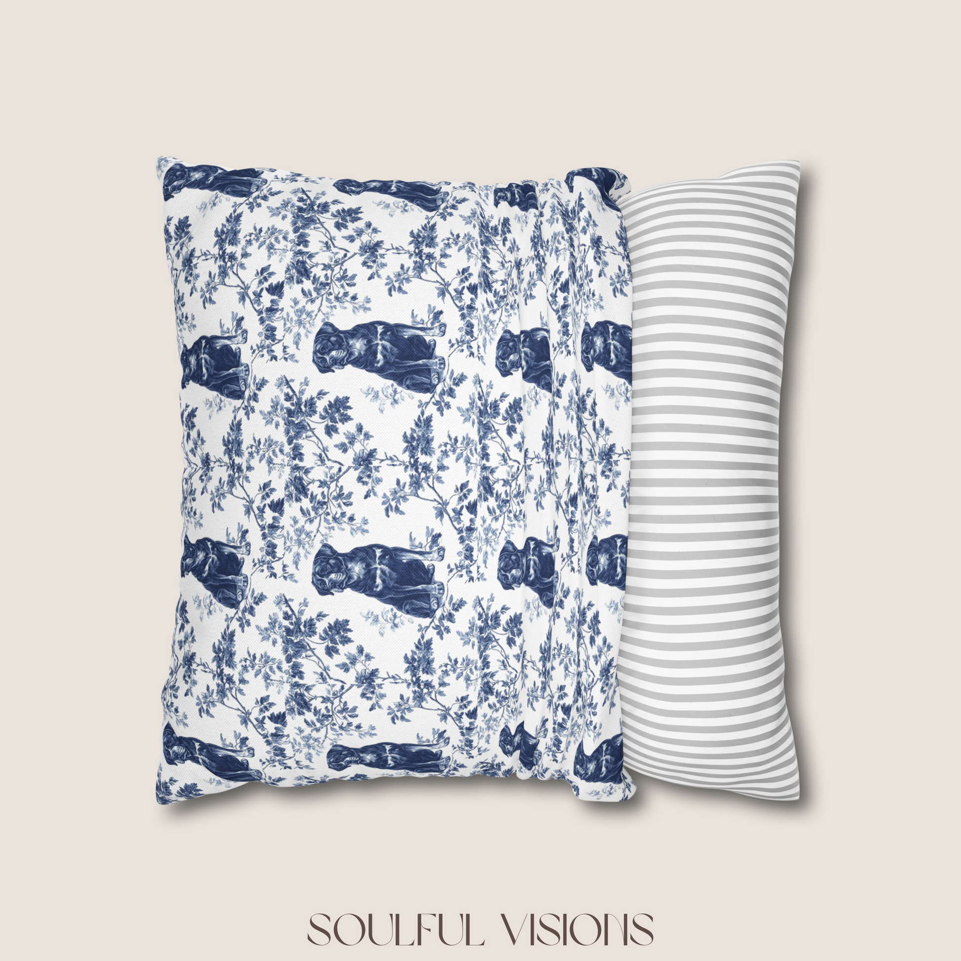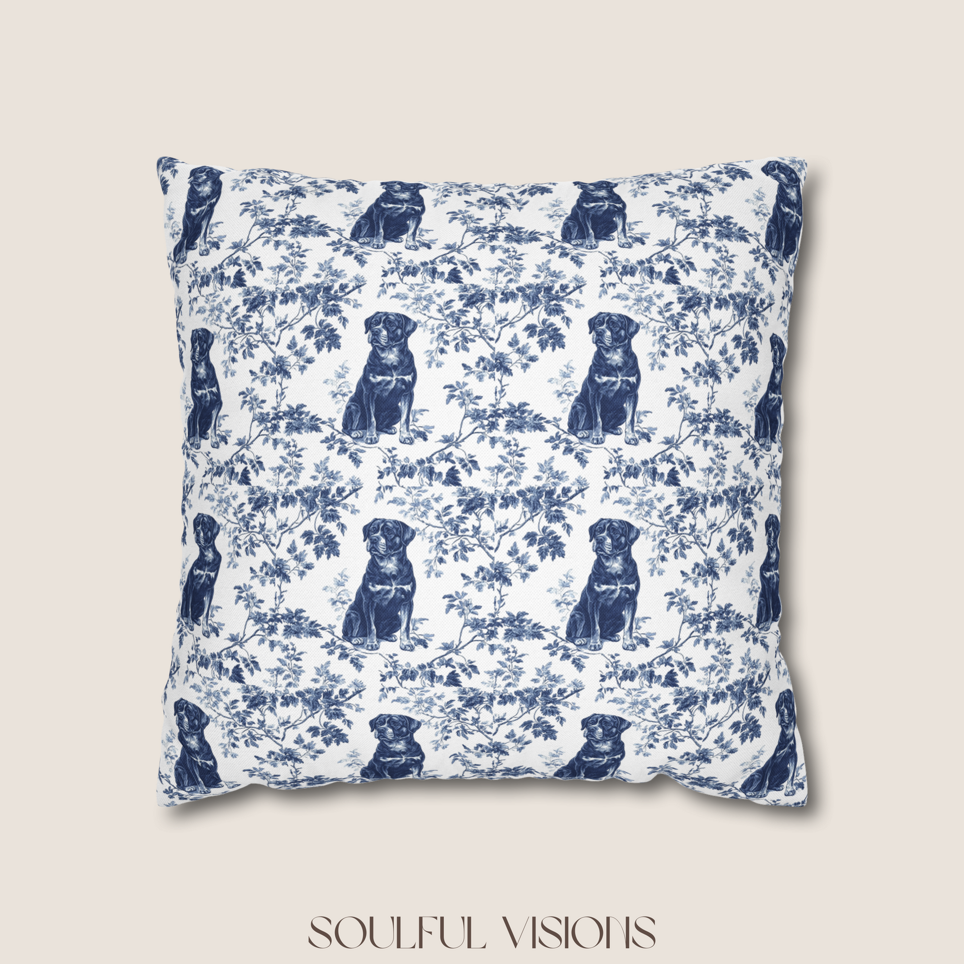 Rottweiler Blue French Toile De Jouy Pillow