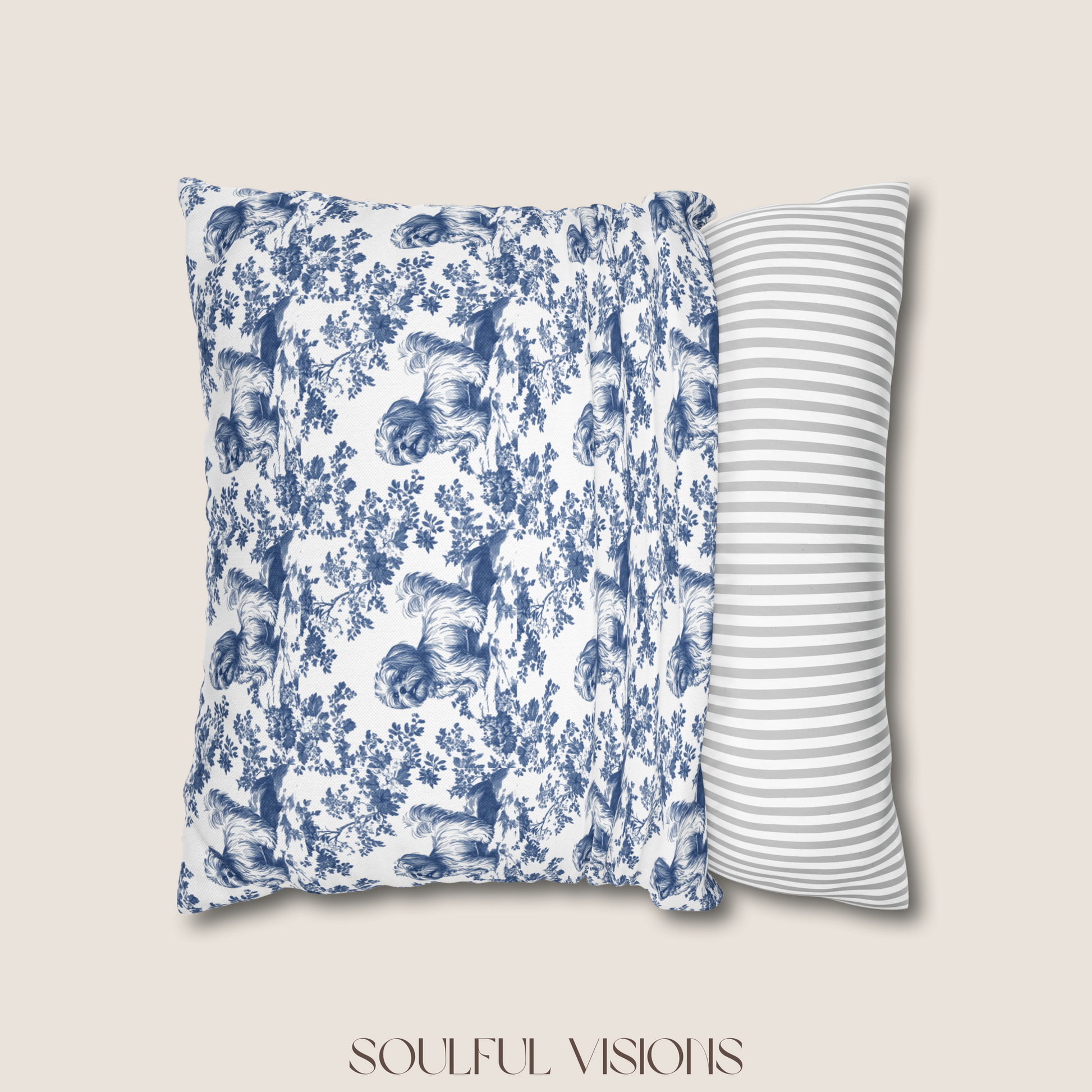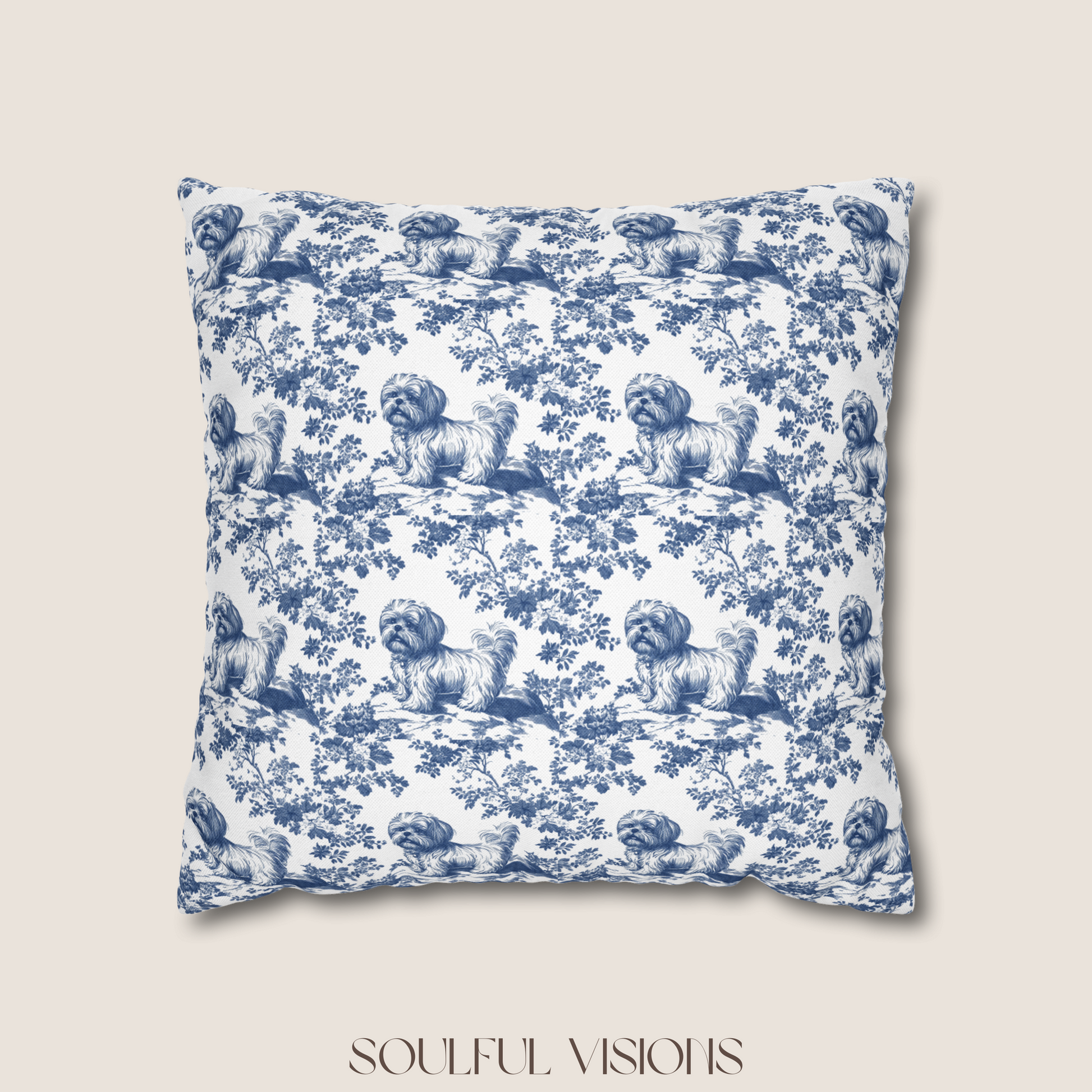 Shih Tzu Blue French Toile De Jouy Pillow