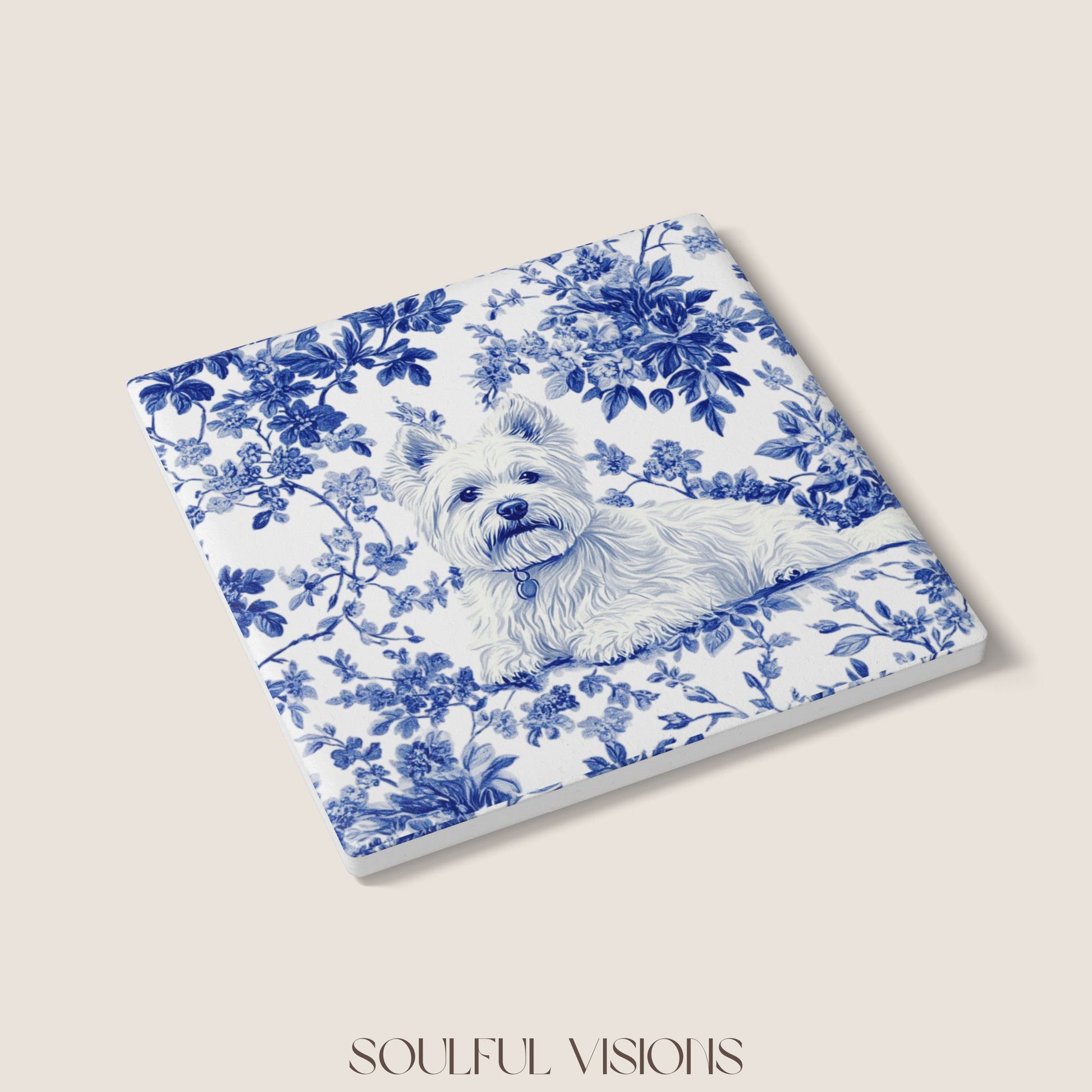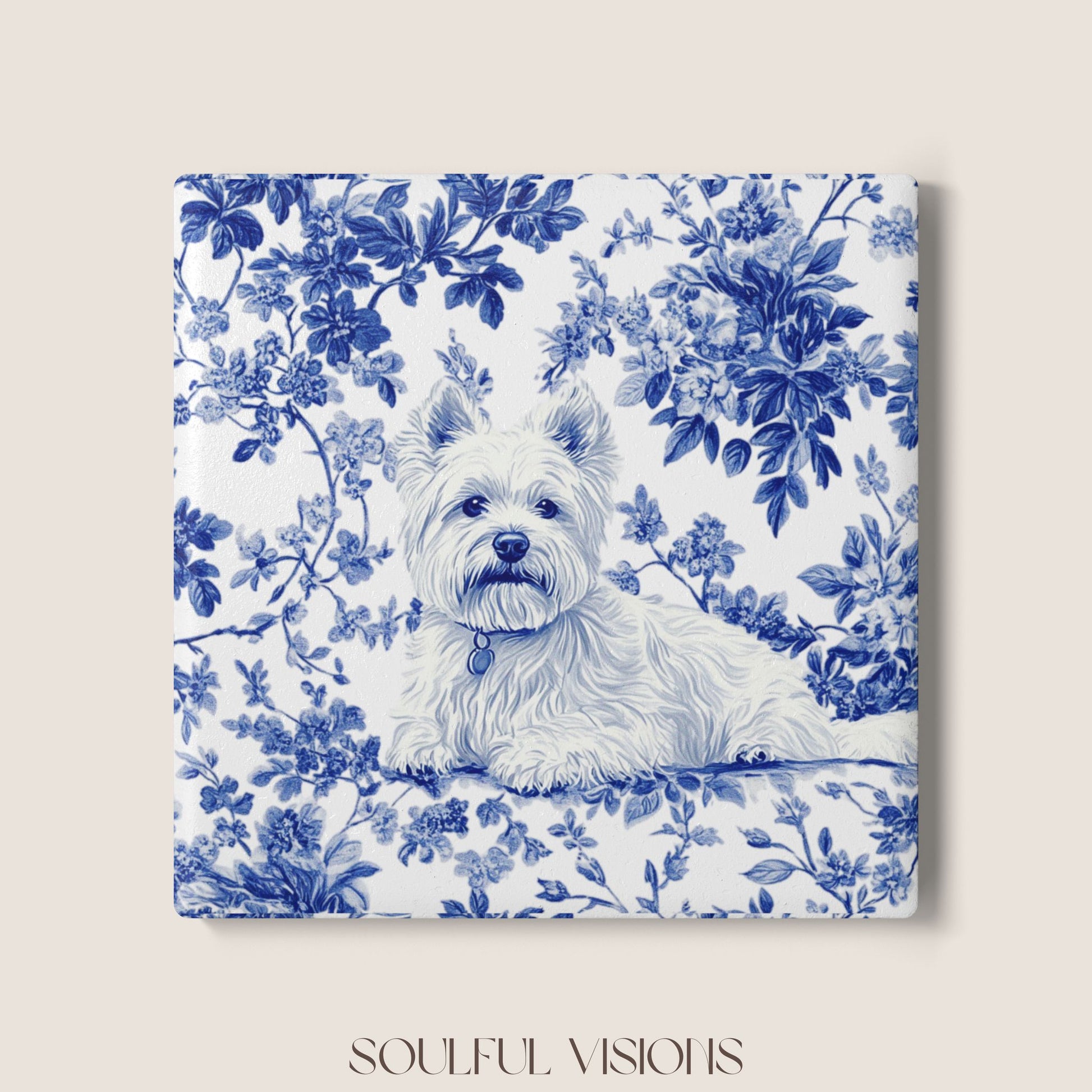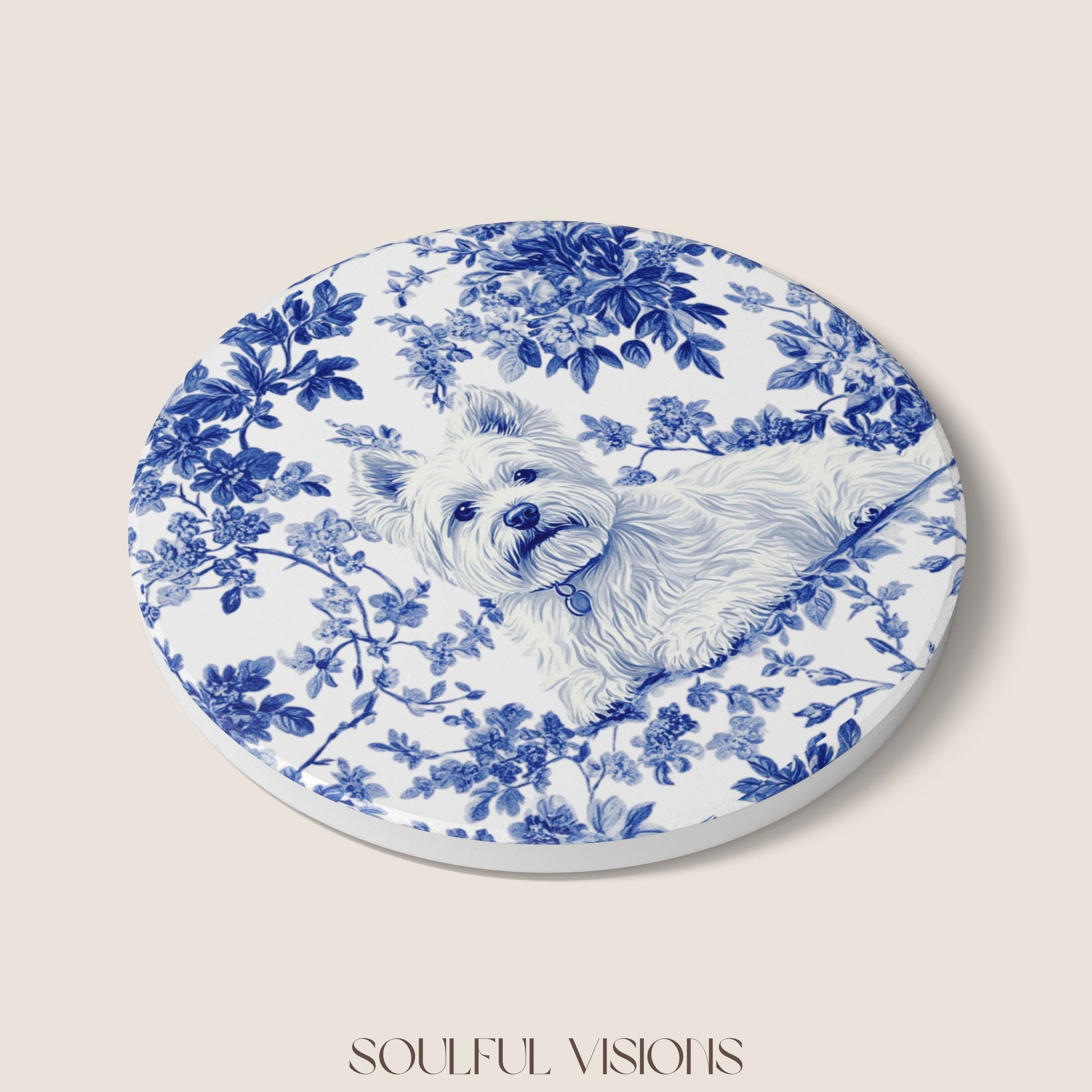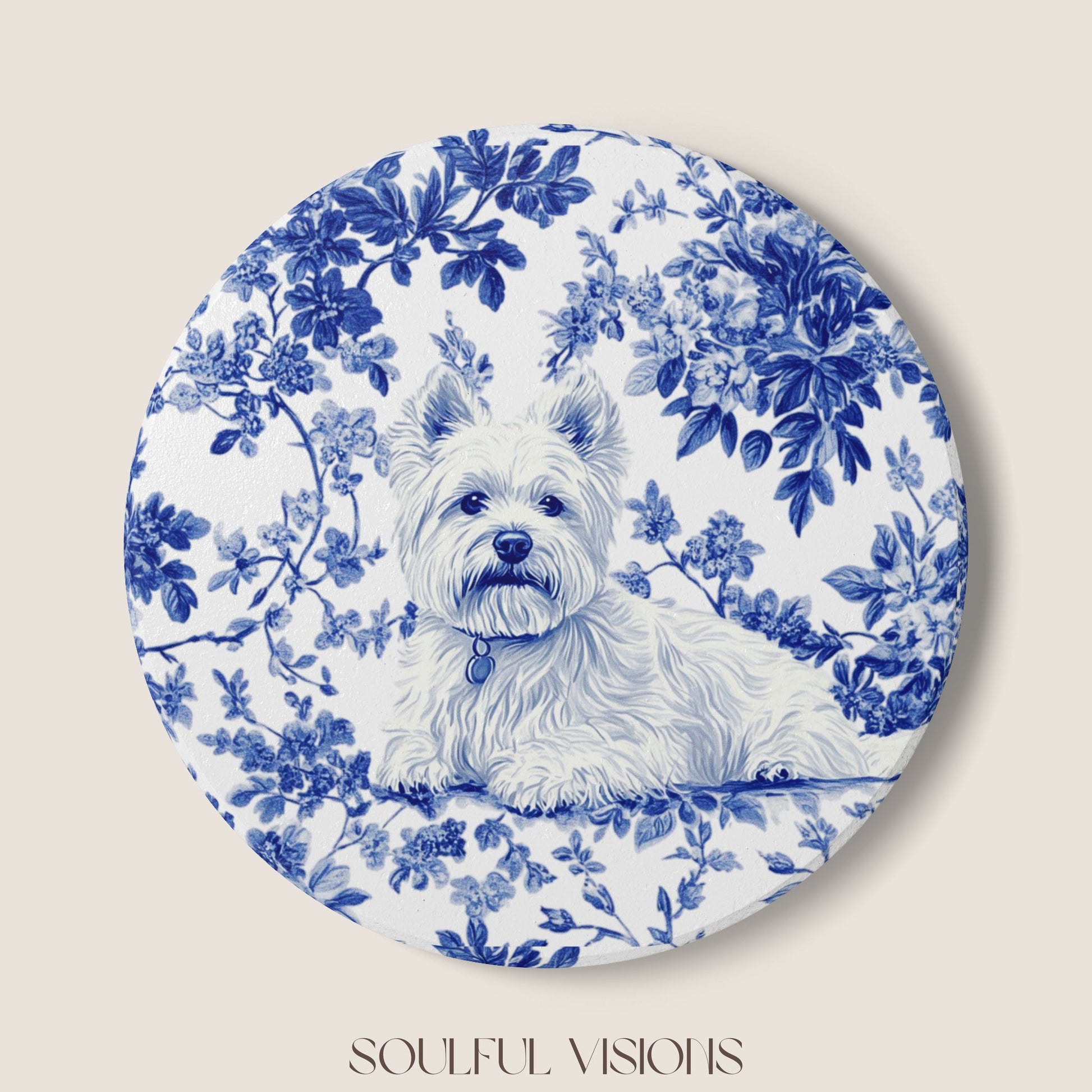 Westie French Blue Toile Ceramic Coaster
