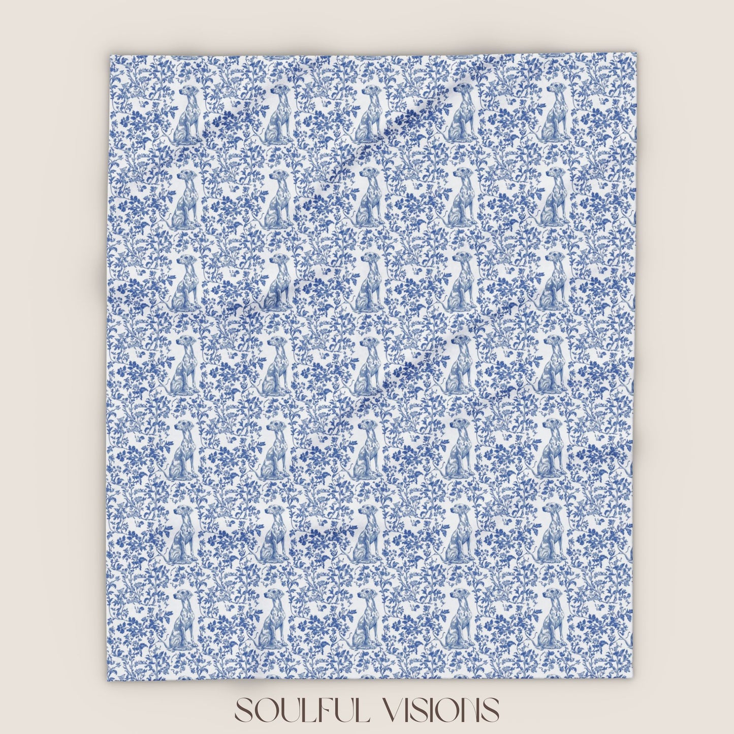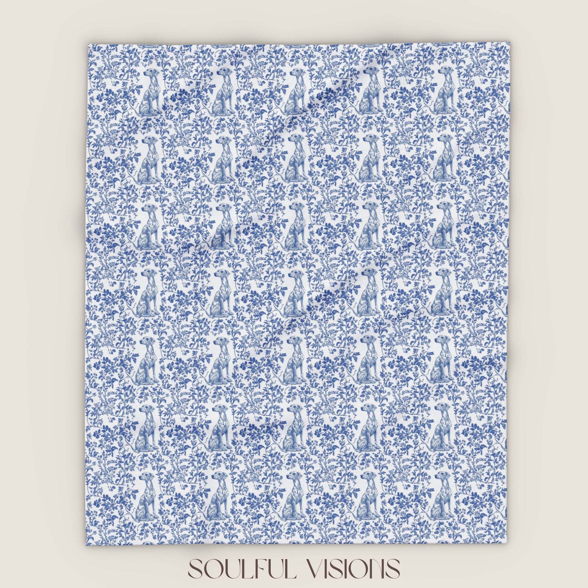 Dog Breeds Toile de Jouy Blue & White Blanket 🐾💙