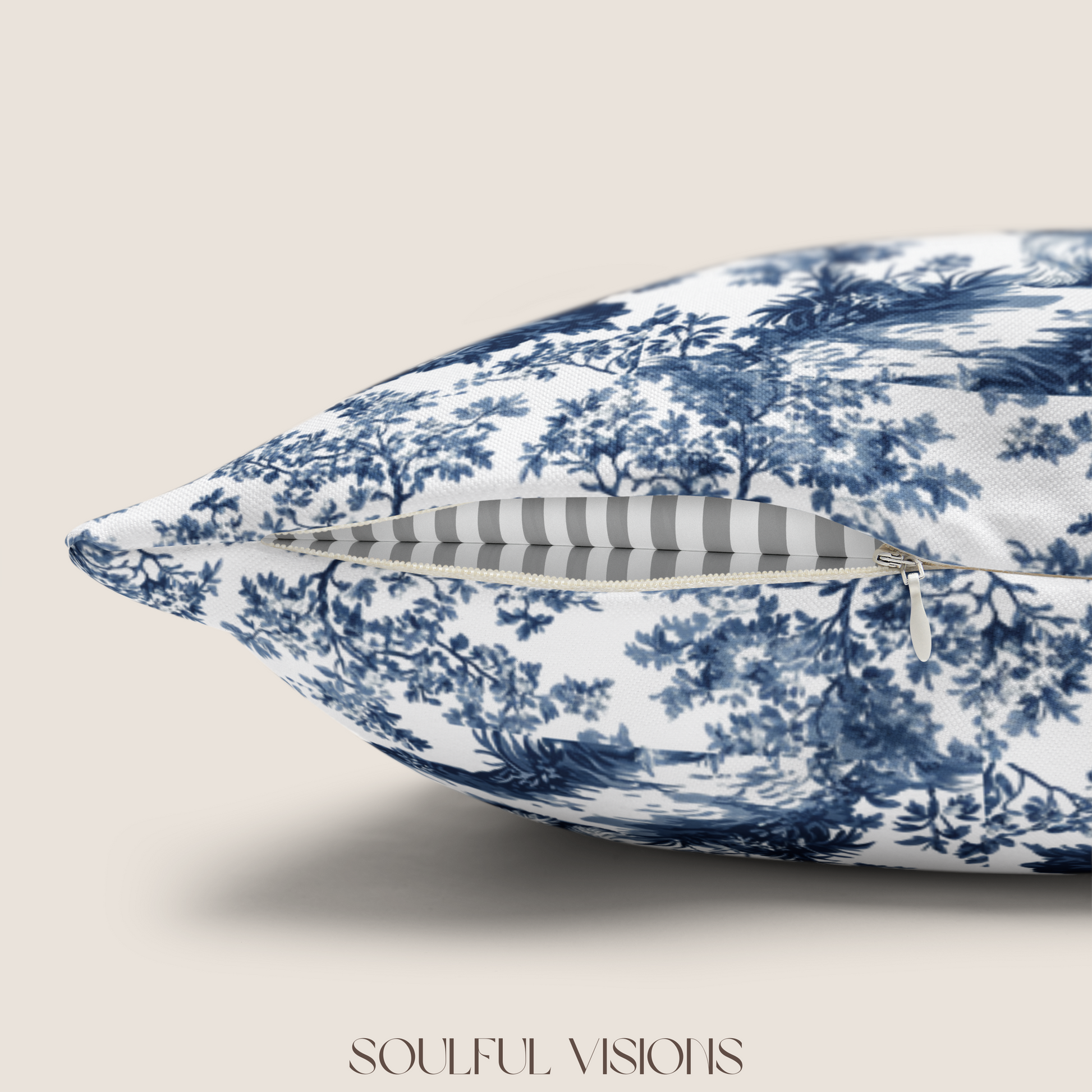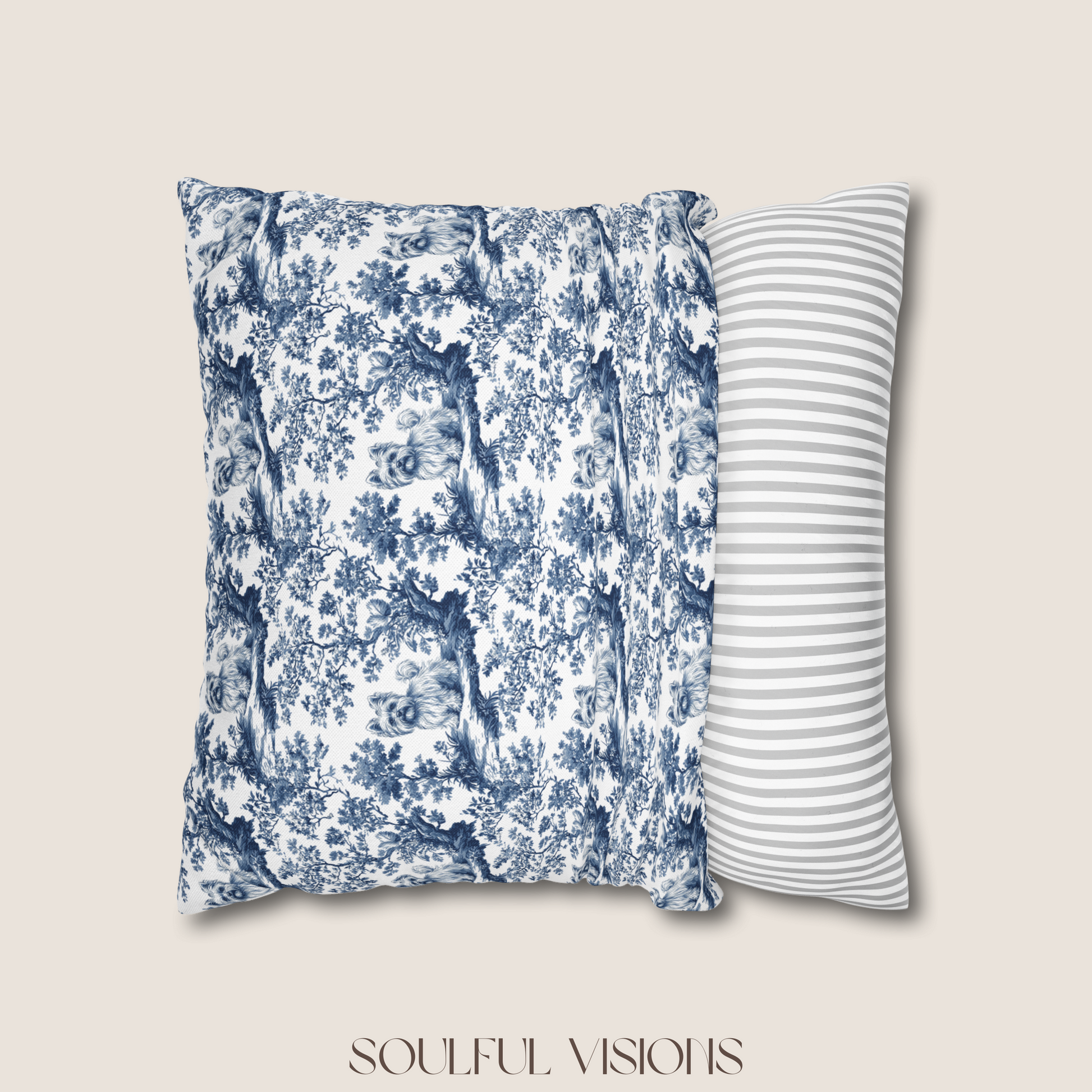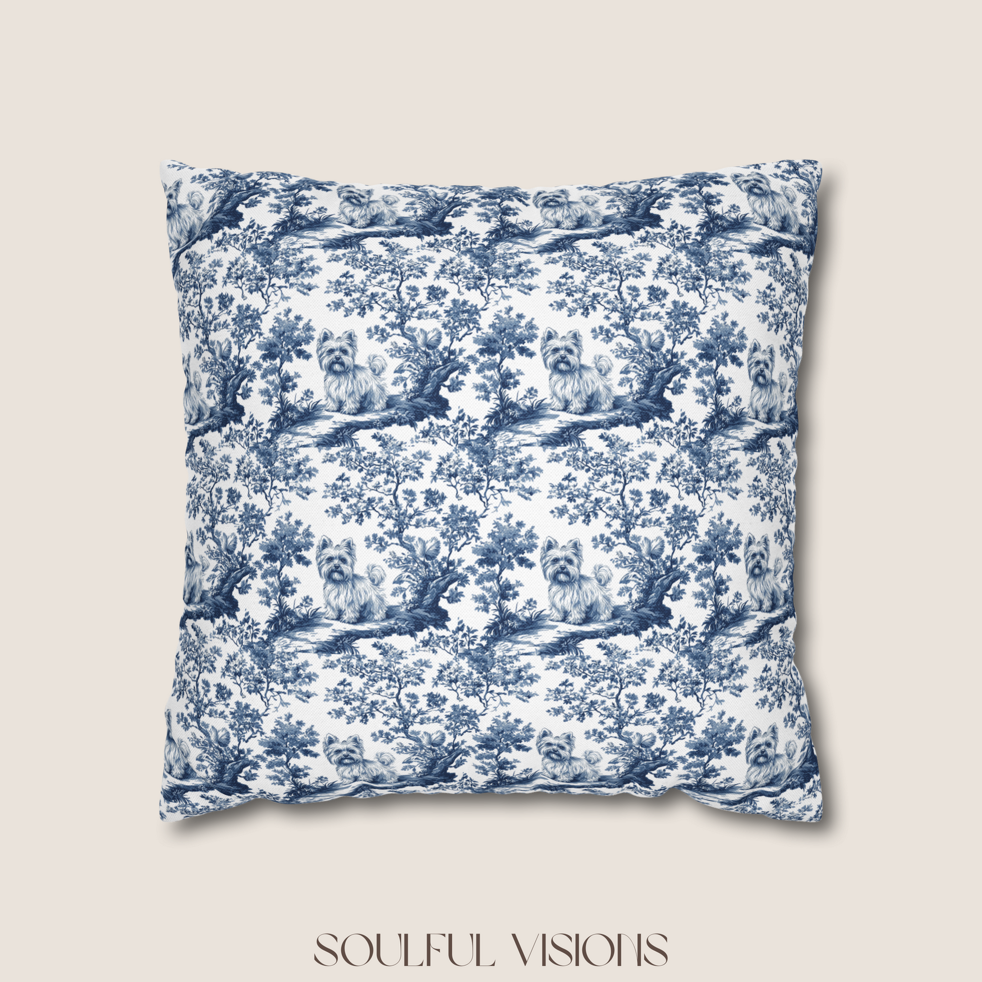 Yorkshire Terrier French Blue Toile De Jouy Pillow