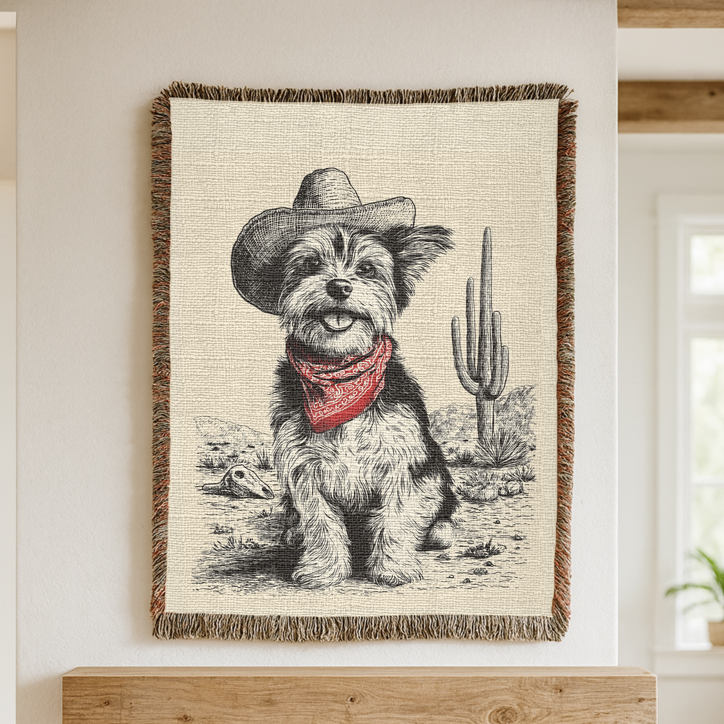Bring cozy western charm into your home with our Western Dog Woven Blanket. Featuring your Favorite Dog Breed in a western-inspired design, this throw adds both warmth and personality to your space. Perfect for cuddling on the couch, styling your bed, or hanging as wall décor, it’s a statement piece you’ll enjoy season after season.